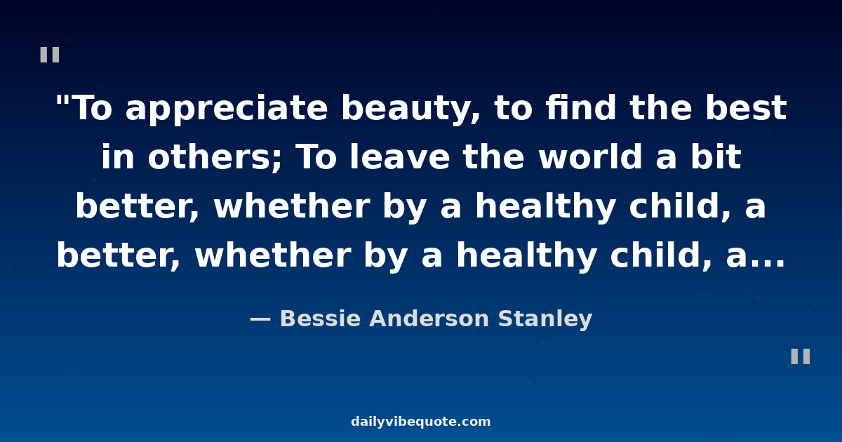 Bessie Anderson Stanley was an American writer and poet. She is best known for her poem 'Success', which emphasizes the importance of inner strength, self-confidence, and personal integrity. Stanley's inspiring words have resonated with readers around the world and continue to be celebrated for their enduring wisdom.