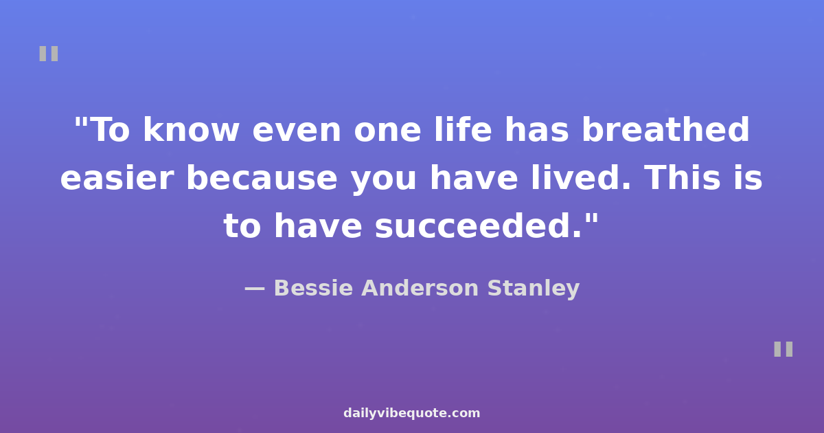 Bessie Anderson Stanley was an American writer and poet. She is best known for her poem 'Success', which emphasizes the importance of inner strength, self-confidence, and personal integrity. Stanley's inspiring words have resonated with readers around the world and continue to be celebrated for their enduring wisdom.