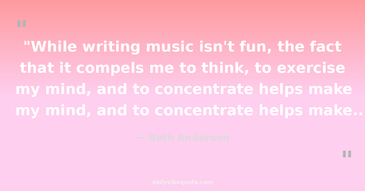 "While writing music isn't fun, the fact that it compels me to think, to exercise my mind, and to concentrate helps make it very rewarding. I think most artists find inspiration in challenge."