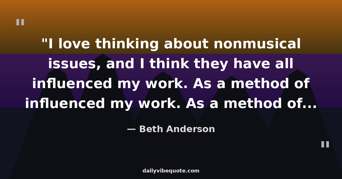 "I love thinking about nonmusical issues, and I think they have all influenced my work. As a method of composition, they can be an integral part of my life."