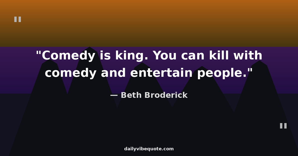 "Comedy is king. You can kill with comedy and entertain people."