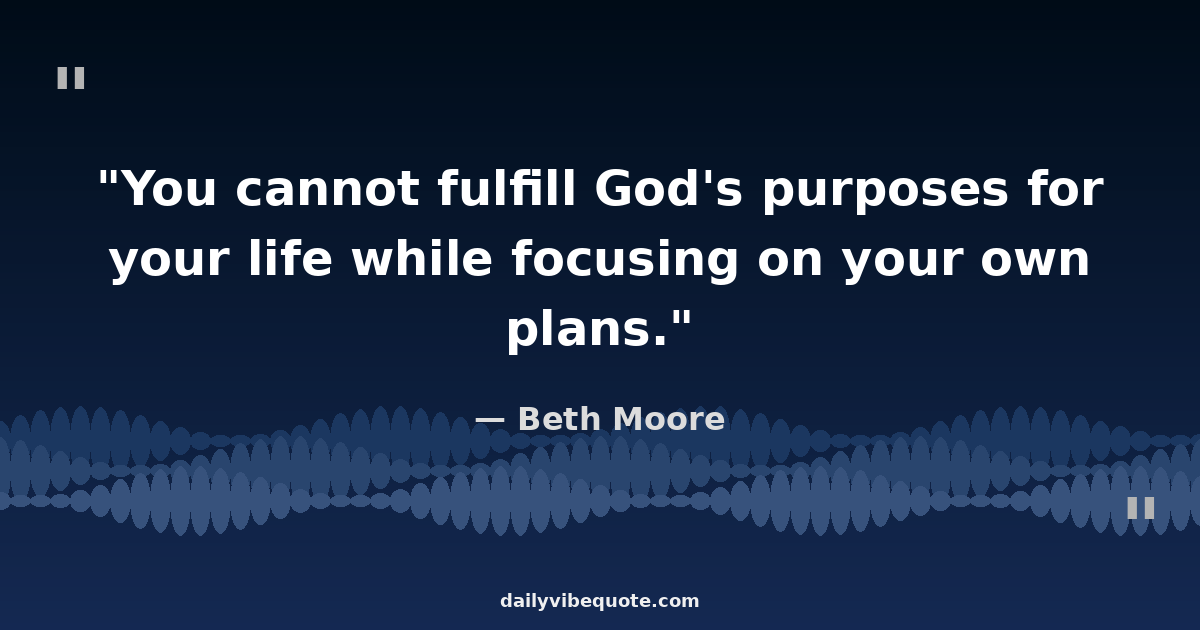 "You cannot fulfill God's purposes for your life while focusing on your own plans."