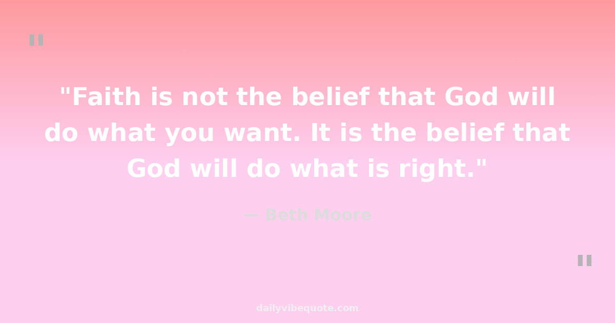 "Faith is not the belief that God will do what you want. It is the belief that God will do what is right."