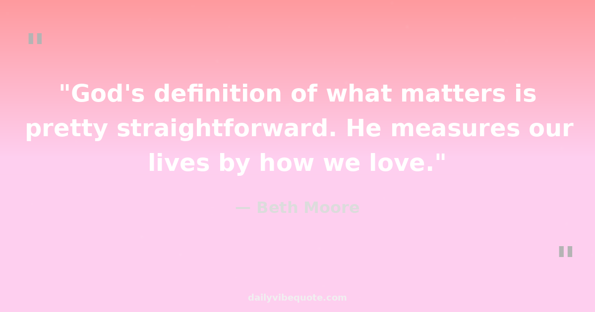 "God's definition of what matters is pretty straightforward. He measures our lives by how we love."