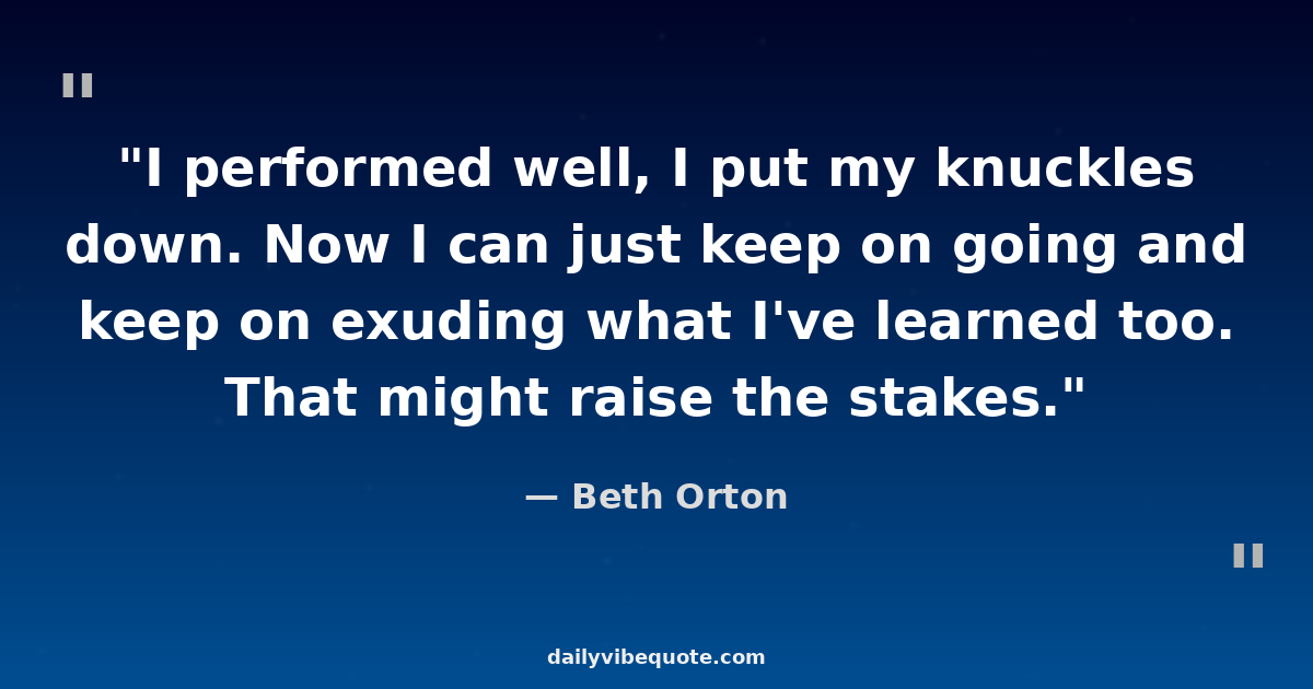 "I performed well, I put my knuckles down. Now I can just keep on going and keep on exuding what I've learned too. That might raise the stakes."