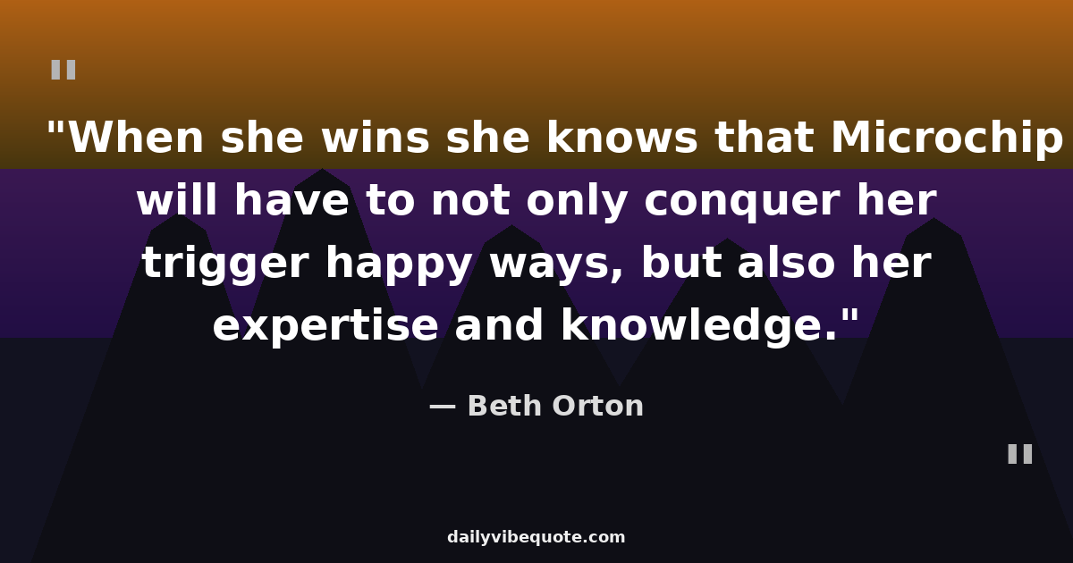 "When she wins she knows that Microchip will have to not only conquer her trigger happy ways, but also her expertise and knowledge."