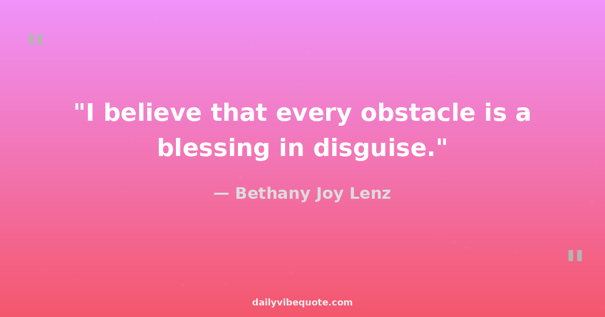 "I believe that every obstacle is a blessing in disguise."