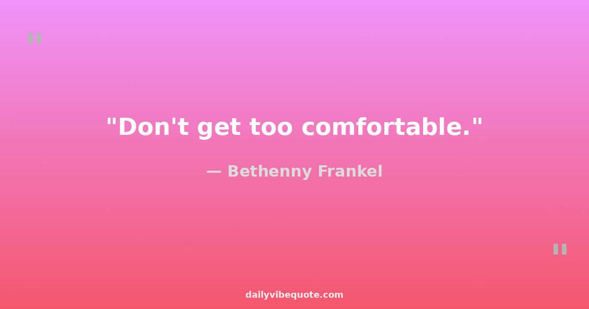"Don't get too comfortable with being comfortable. Keep pushing outside of what you know."