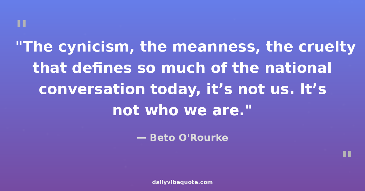 "The cynicism, the meanness, the cruelty that defines so much of the national conversation today, it’s not us. It’s not who we are."