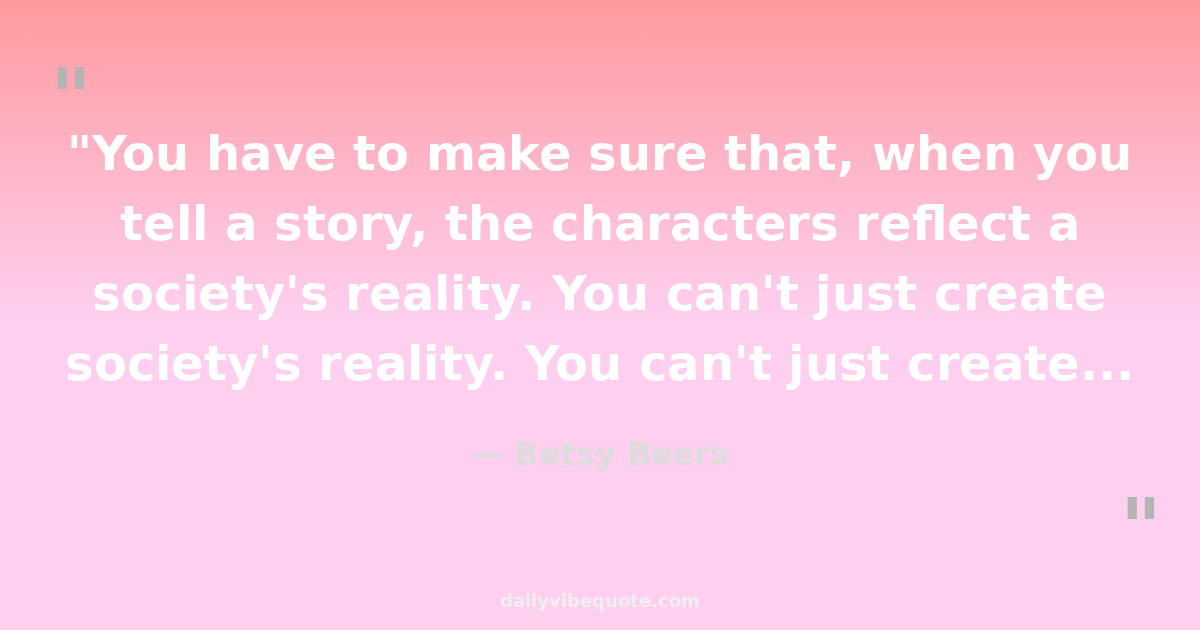"You have to make sure that, when you tell a story, the characters reflect a society's reality. You can't just create the same characters we've seen a million times."