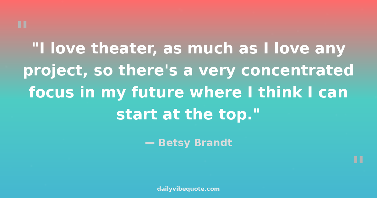 "I love theater, as much as I love any project, so there's a very concentrated focus in my future where I think I can start at the top."