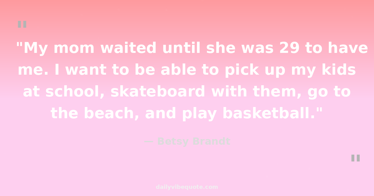 "My mom waited until she was 29 to have me. I want to be able to pick up my kids at school, skateboard with them, go to the beach, and play basketball."