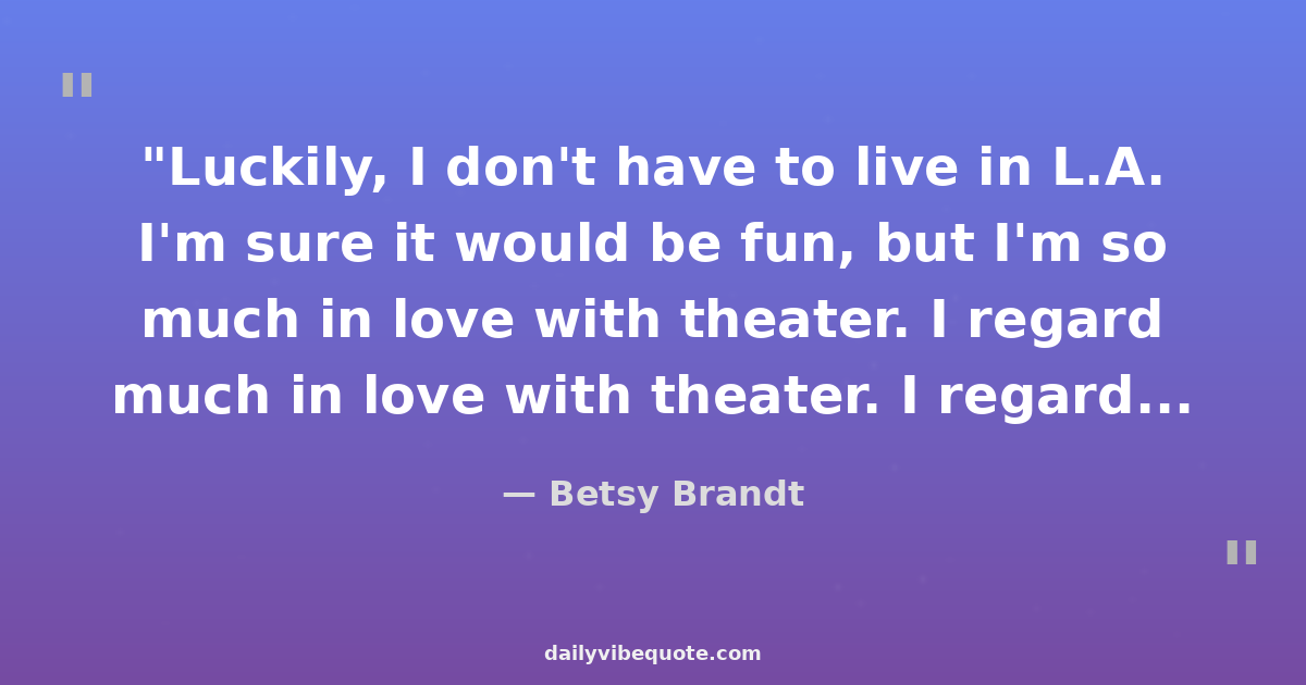 "Luckily, I don't have to live in L.A. I'm sure it would be fun, but I'm so much in love with theater. I regard theater as a rarity, so I don't want to dilute that enjoyment."