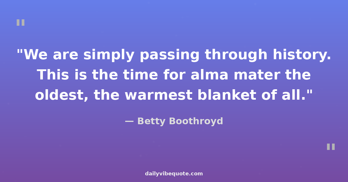 "We are simply passing through history. This is the time for alma mater the oldest, the warmest blanket of all."
