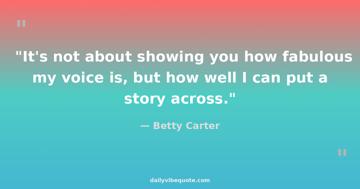 Betty Carter was an American jazz singer known for her unique vocal style and improvisational skills. She began her career in the 1940s and soon gained recognition for her captivating performances. Carter's innovative approach to scat singing and her ability to interpret jazz standards set her apart as a prominent figure in the jazz world. Throughout her career, she received several awards and accolades for her contributions to the genre.
