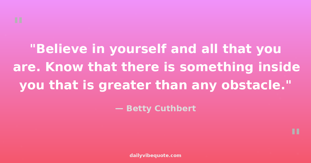 "Believe in yourself and all that you are. Know that there is something inside you that is greater than any obstacle."