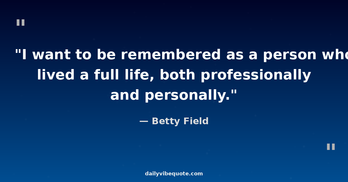 "I want to be remembered as a person who lived a full life, both professionally and personally."