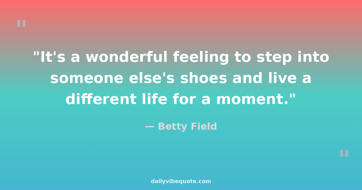 "It's a wonderful feeling to step into someone else's shoes and live a different life for a moment."