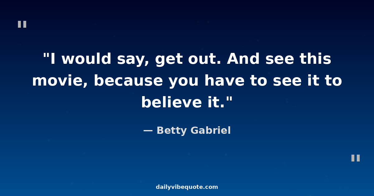 "I would say, get out. And see this movie, because you have to see it to believe it."
