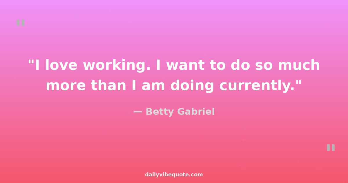 "I love working. I want to do so much more than I am doing currently."
