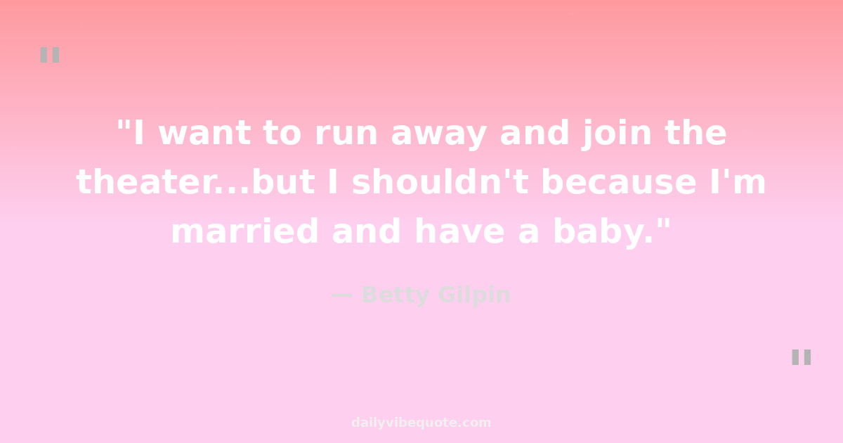 "I want to run away and join the theater...but I shouldn't because I'm married and have a baby."