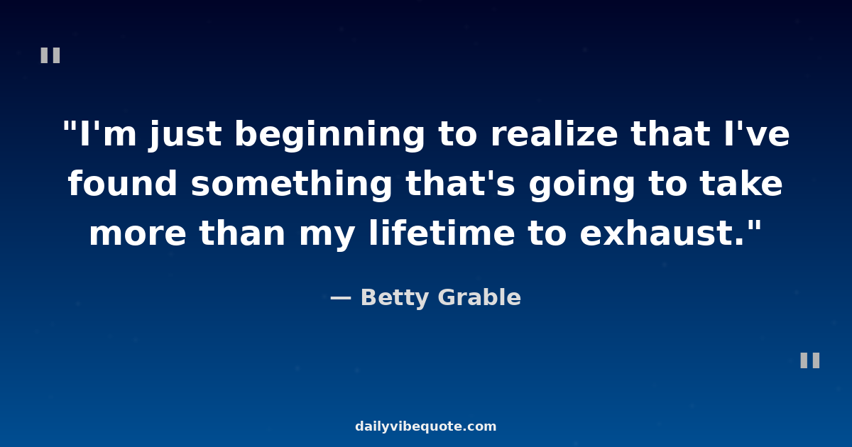 "I'm just beginning to realize that I've found something that's going to take more than my lifetime to exhaust."