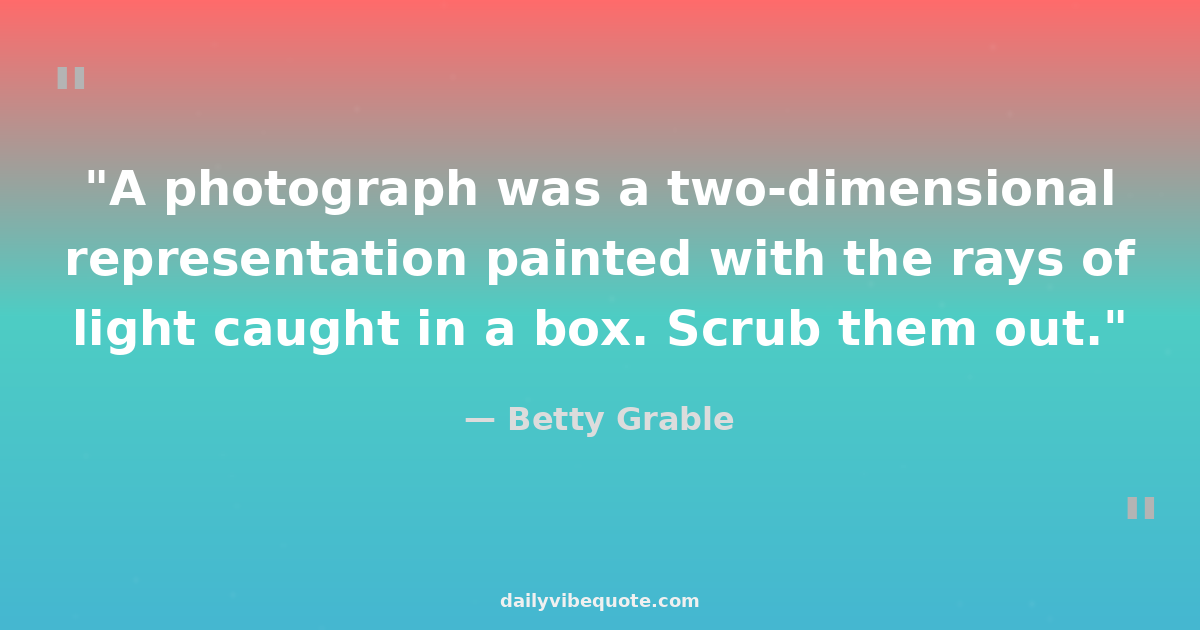 "A photograph was a two-dimensional representation painted with the rays of light caught in a box. Scrub them out."