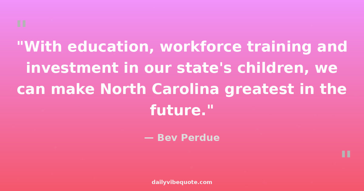 "With education, workforce training and investment in our state's children, we can make North Carolina greatest in the future."