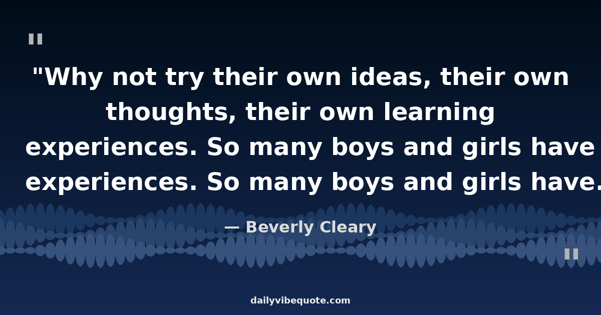 "Why not try their own ideas, their own thoughts, their own learning experiences. So many boys and girls have such interesting experiences to write about. Children are amazingly verbal, usually."