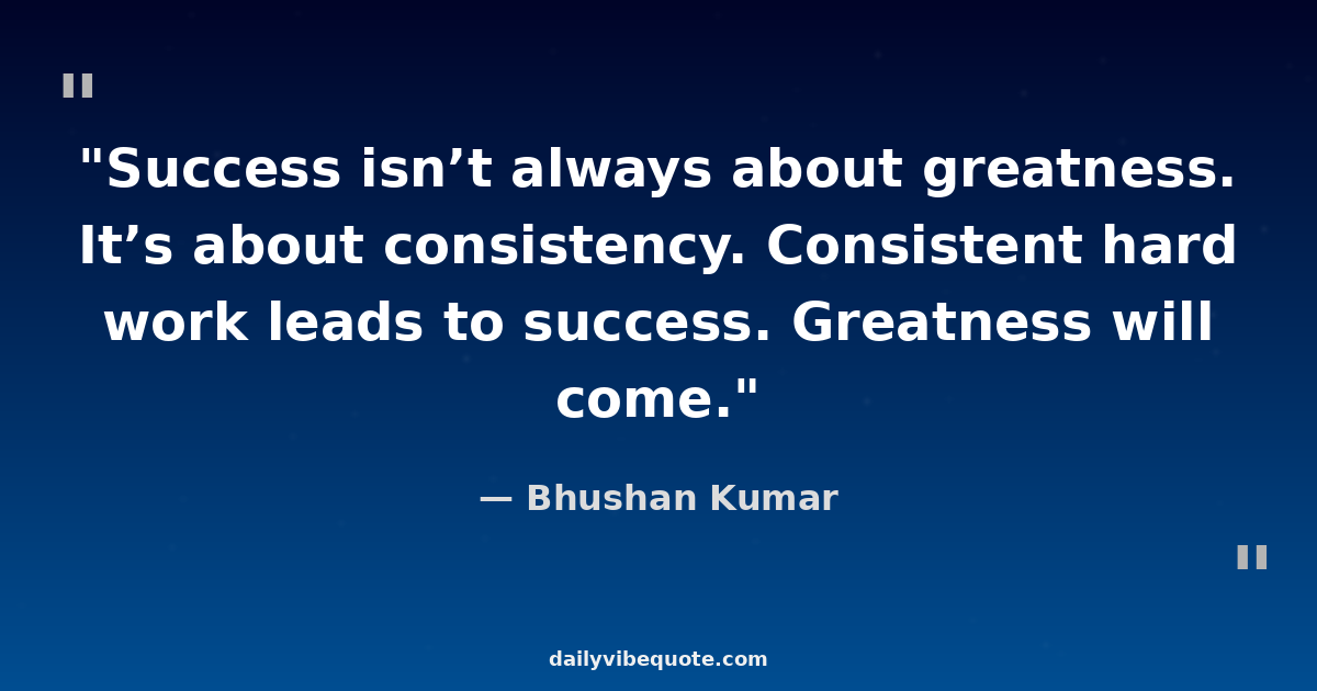 "Success isn’t always about greatness. It’s about consistency. Consistent hard work leads to success. Greatness will come."