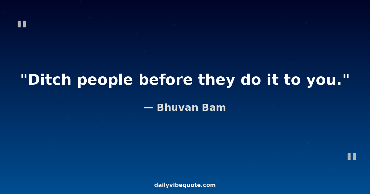"Ditch people before they do it to you."