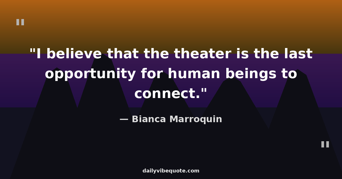 "I believe that the theater is the last opportunity for human beings to connect."