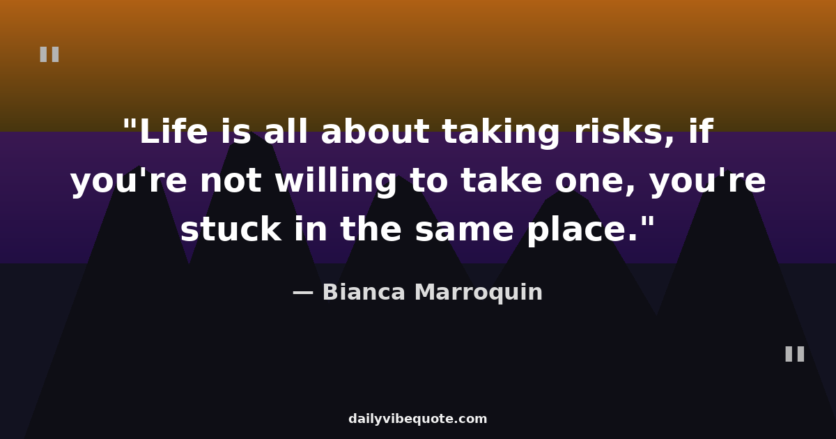 "Life is all about taking risks, if you're not willing to take one, you're stuck in the same place."