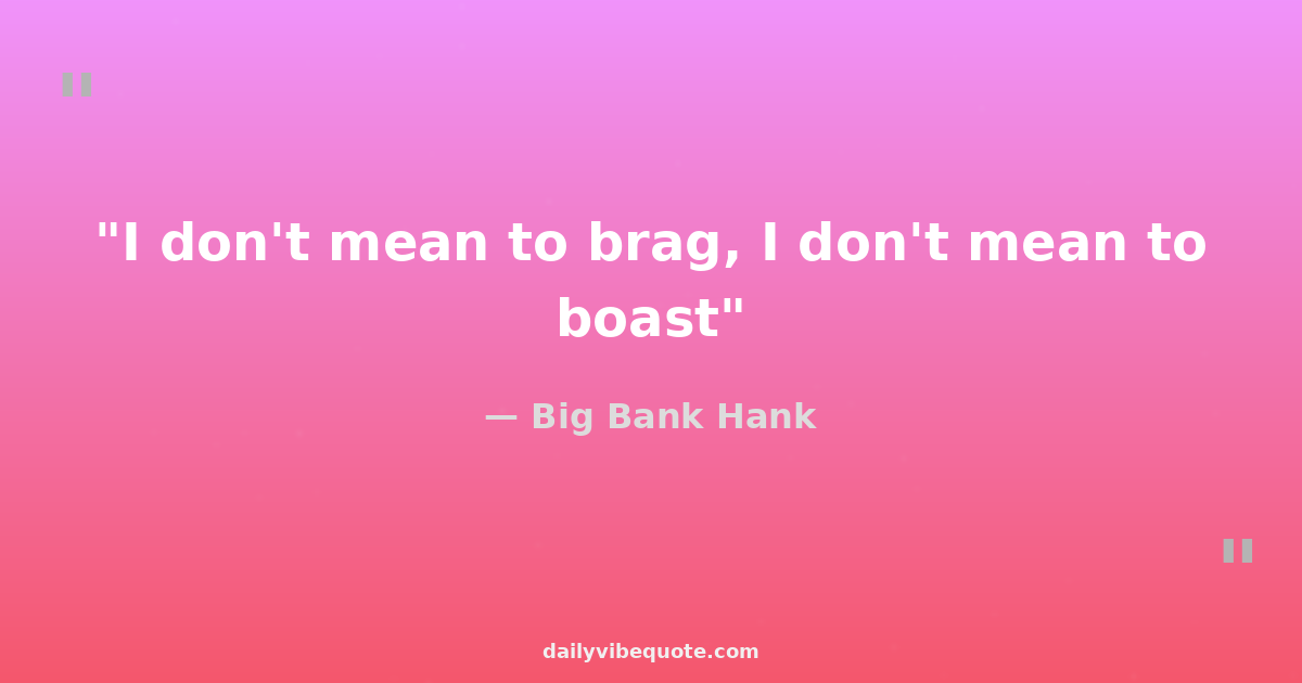"I don't mean to brag, I don't mean to boast"