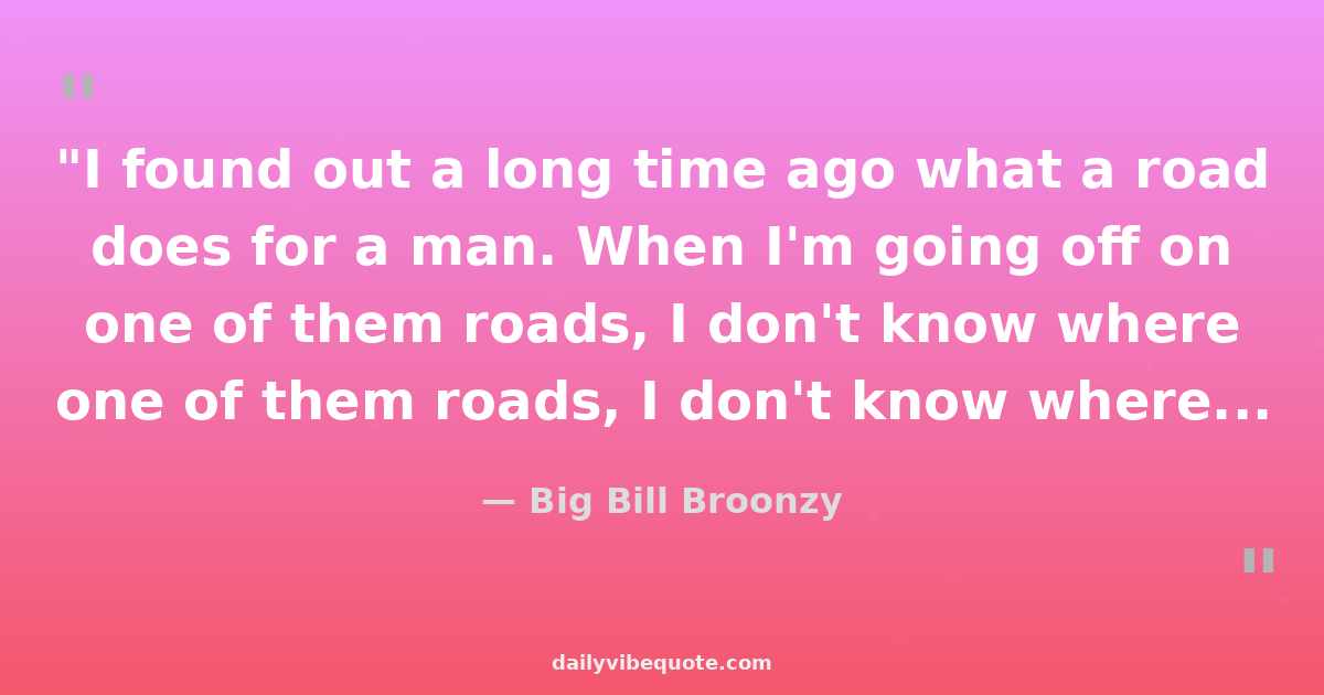 "I found out a long time ago what a road does for a man. When I'm going off on one of them roads, I don't know where I'm going. And when I'm coming back, I don't know where I've been."