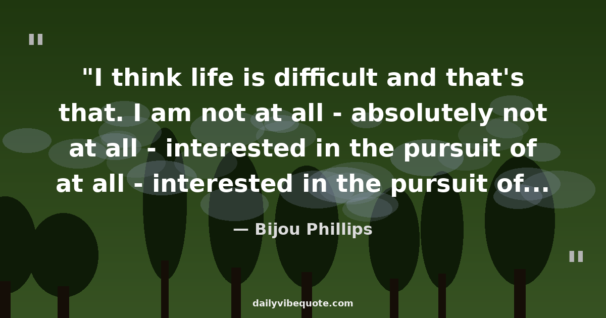 "I think life is difficult and that's that. I am not at all - absolutely not at all - interested in the pursuit of happiness. I am not interested in the pursuit of positivity. I am interested in pursuing a truth, and the truth often seems to be not happiness but its opposite."