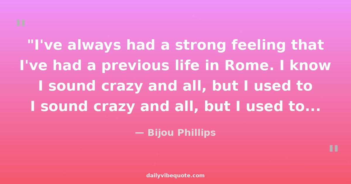 "I've always had a strong feeling that I've had a previous life in Rome. I know I sound crazy and all, but I used to have these weird recurring dreams about trying to save the city."