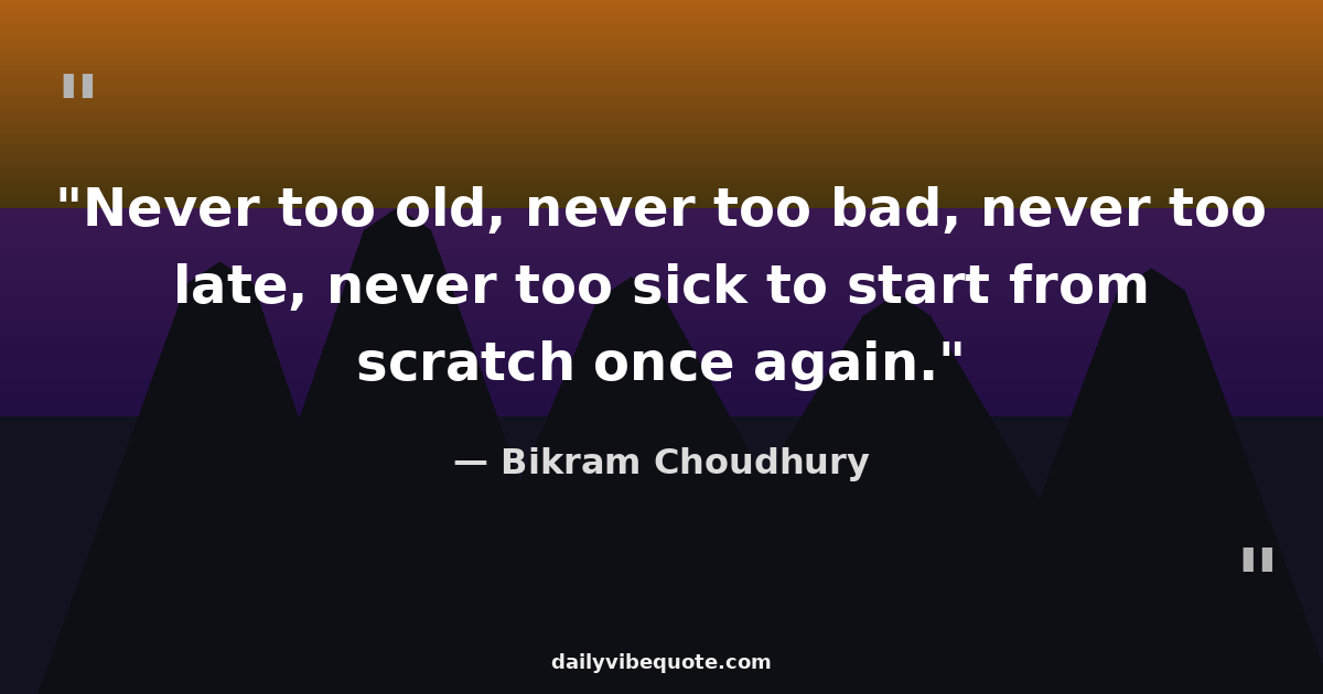 "Never too old, never too bad, never too late, never too sick to start from scratch once again."