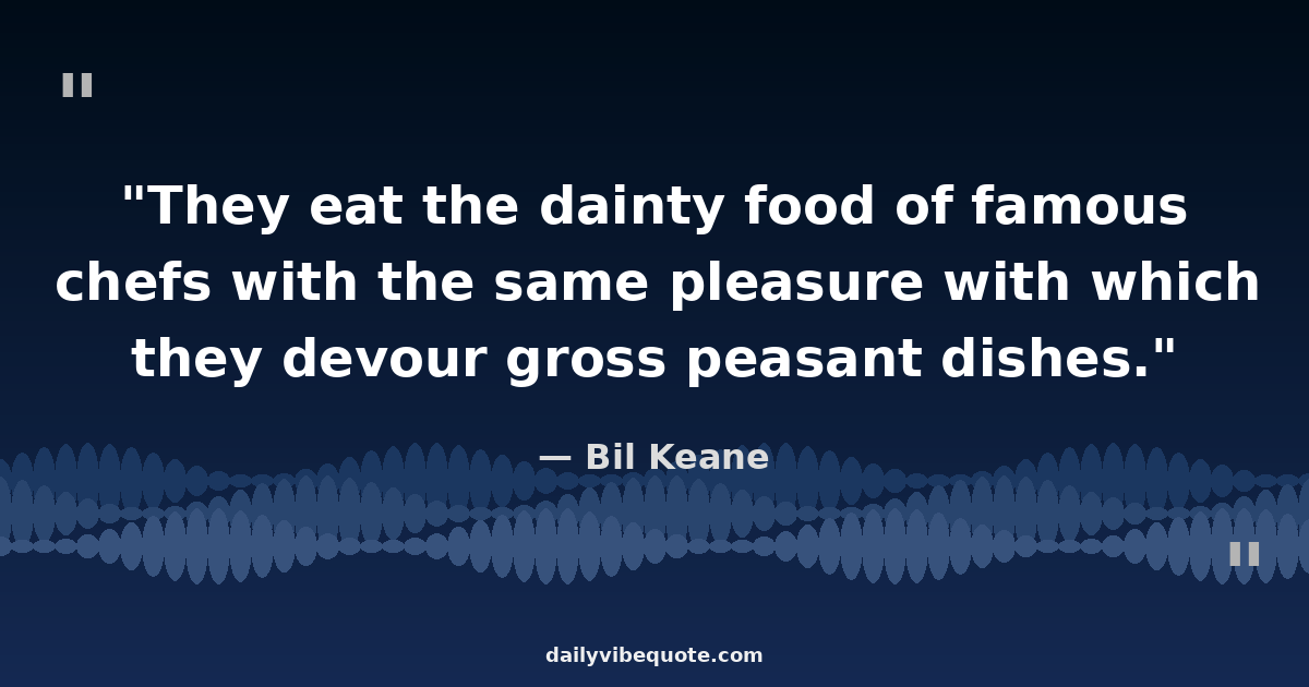 "They eat the dainty food of famous chefs with the same pleasure with which they devour gross peasant dishes."