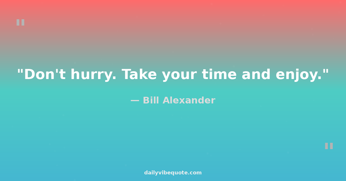 "Don't hurry. Take your time and enjoy."