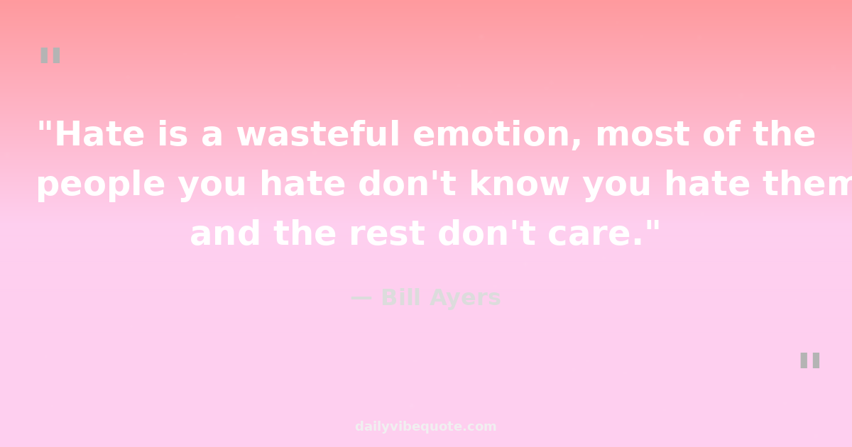 "Hate is a wasteful emotion, most of the people you hate don't know you hate them and the rest don't care."