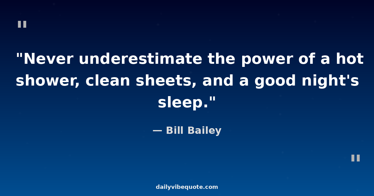"Never underestimate the power of a hot shower, clean sheets, and a good night's sleep."