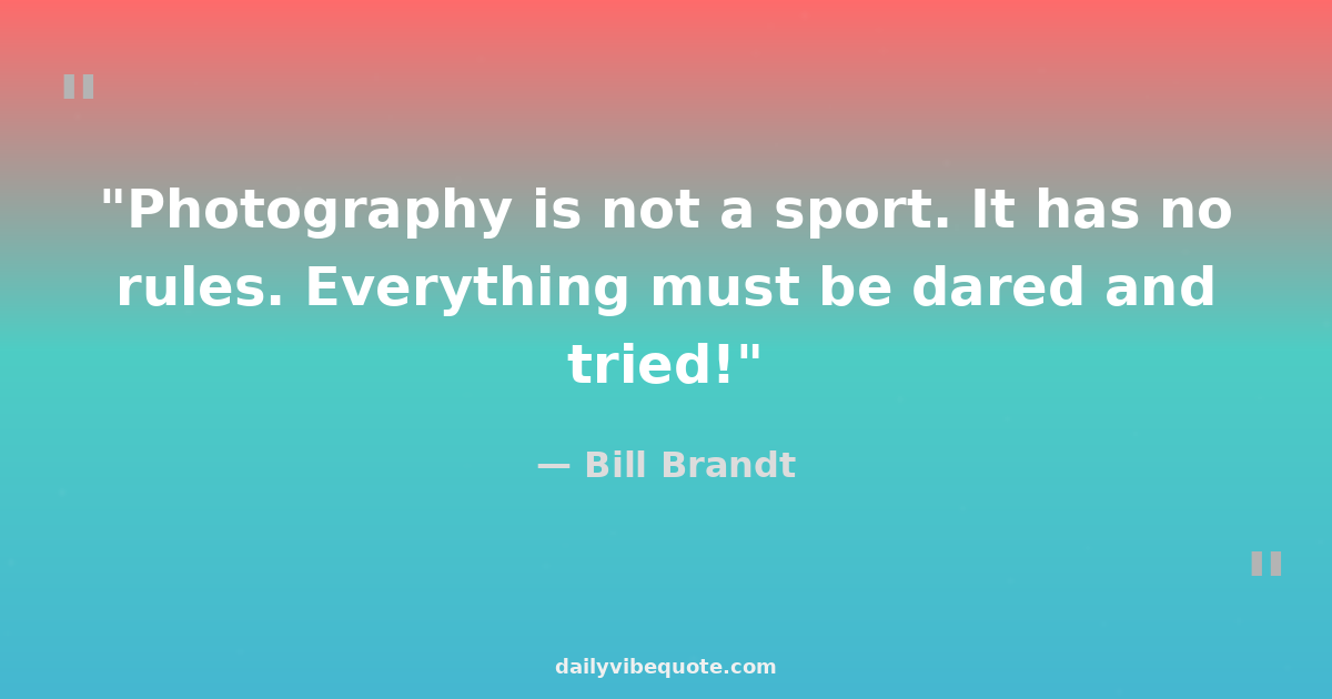 "Photography is not a sport. It has no rules. Everything must be dared and tried!"