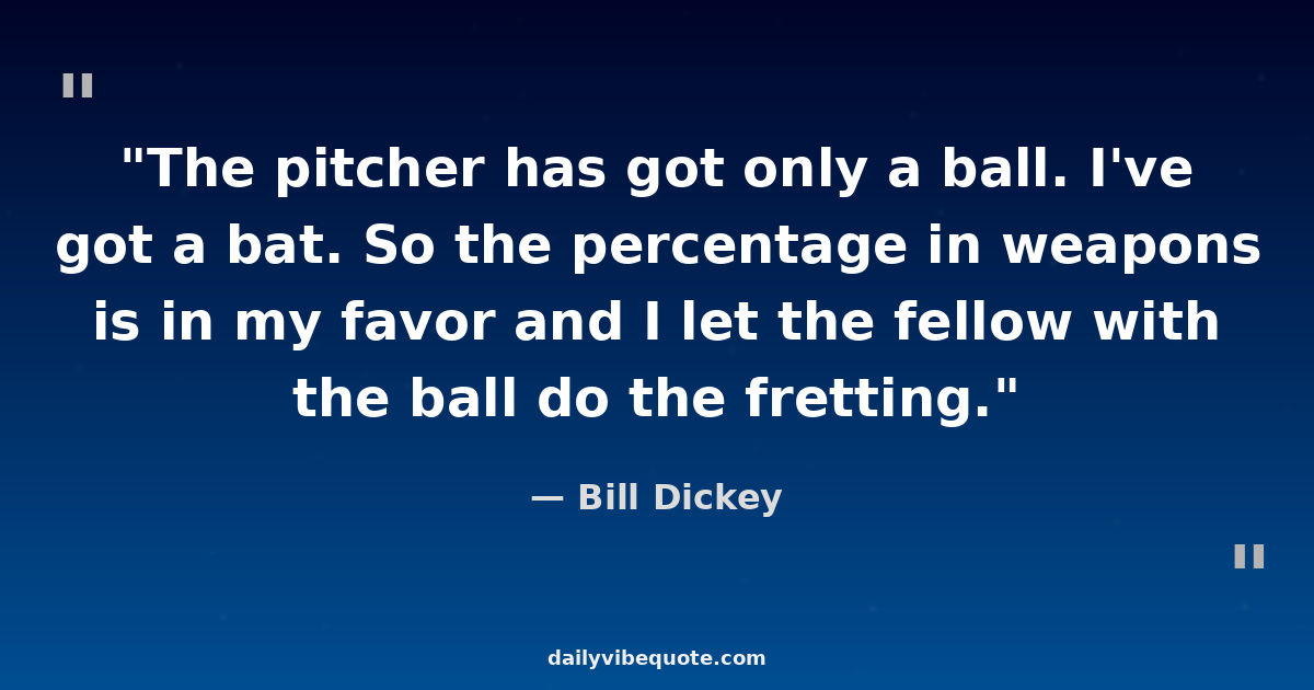 "The pitcher has got only a ball. I've got a bat. So the percentage in weapons is in my favor and I let the fellow with the ball do the fretting."