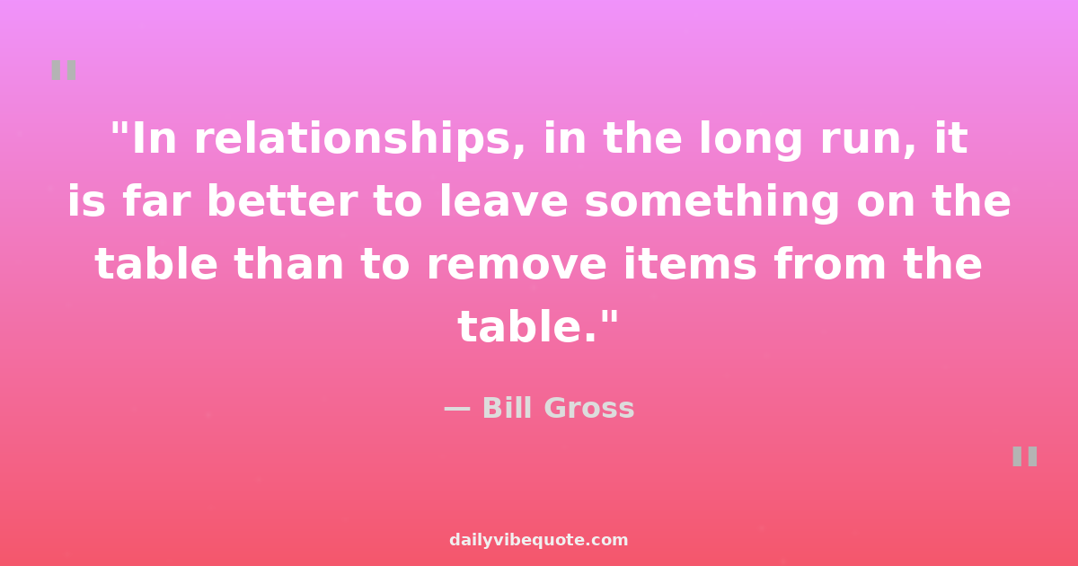 "In relationships, in the long run, it is far better to leave something on the table than to remove items from the table."