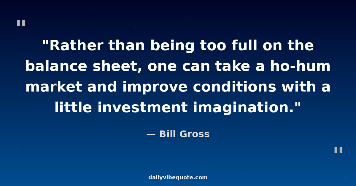 "Rather than being too full on the balance sheet, one can take a ho-hum market and improve conditions with a little investment imagination."