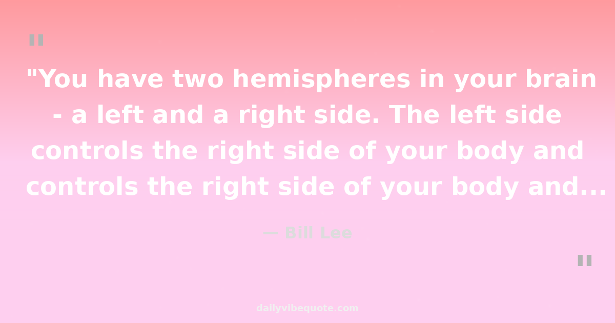 "You have two hemispheres in your brain - a left and a right side. The left side controls the right side of your body and the right side controls the left half. We have to unite both."