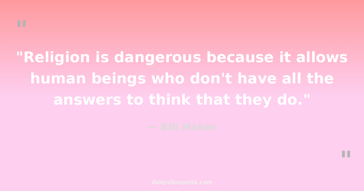 "Religion is dangerous because it allows human beings who don't have all the answers to think that they do."