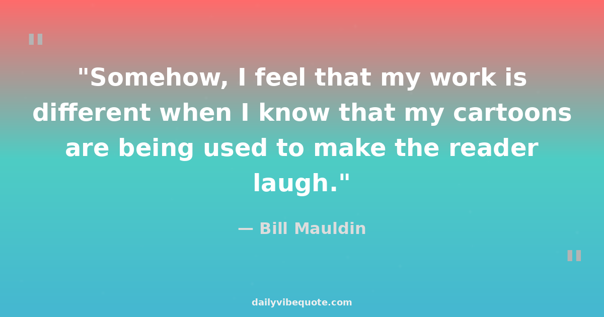 "Somehow, I feel that my work is different when I know that my cartoons are being used to make the reader laugh."