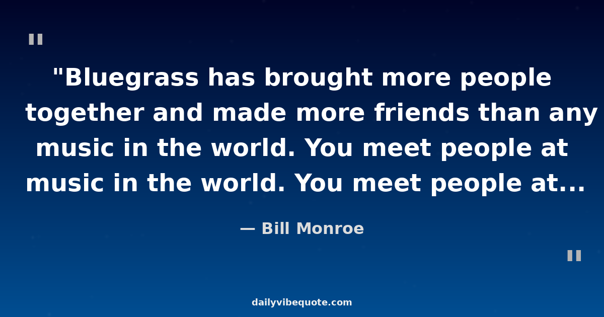 "Bluegrass has brought more people together and made more friends than any music in the world. You meet people at the festivals, and you meet them again just like old friends."
